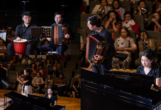 音乐会的成功举办,同样离不开三位年轻助力者的精彩配合。钢琴伴奏徐冰清、小提琴伴奏水天奇与合唱团指挥宋忠诚,以精湛技艺为演出保驾护航。流畅的琴声、悠扬的弦音与精准的指挥手势相得益彰,为合唱作品注入更多活力,让整体表演更具层次感。他们在舞台上与合唱团的演出相互映衬,增光添彩。“老少同台”温馨画面,不仅展现了艺术的传承,更触动了现场每一位观众的内心。