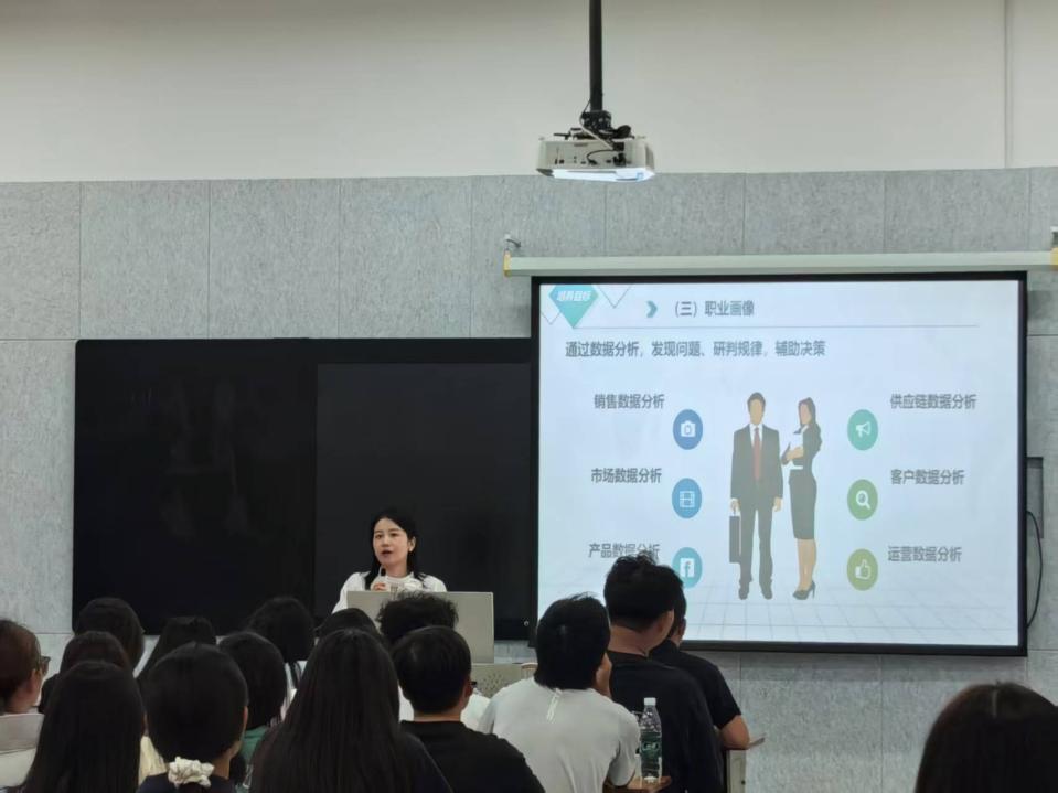 为了让新生们更直观地感受数据分析在实际工作中的应用,徐总结合多个数据赋能外贸企业的实际案例进行了详细讲解,这些案例让新生们深刻认识到商务数据分析的巨大价值和应用潜力,同时徐总也提出了要胜任商务数据分析相关岗位需要具备的能力和素质。