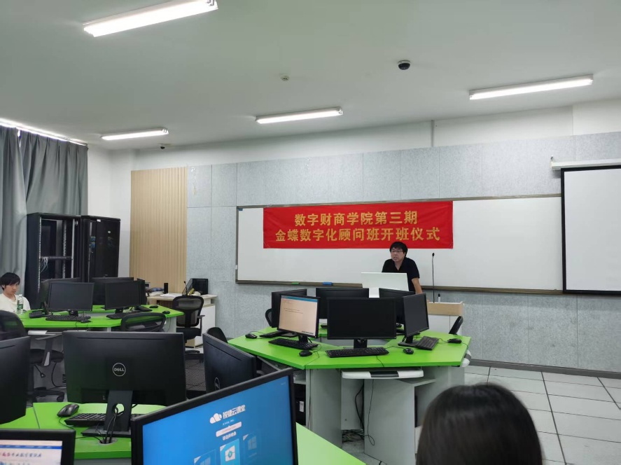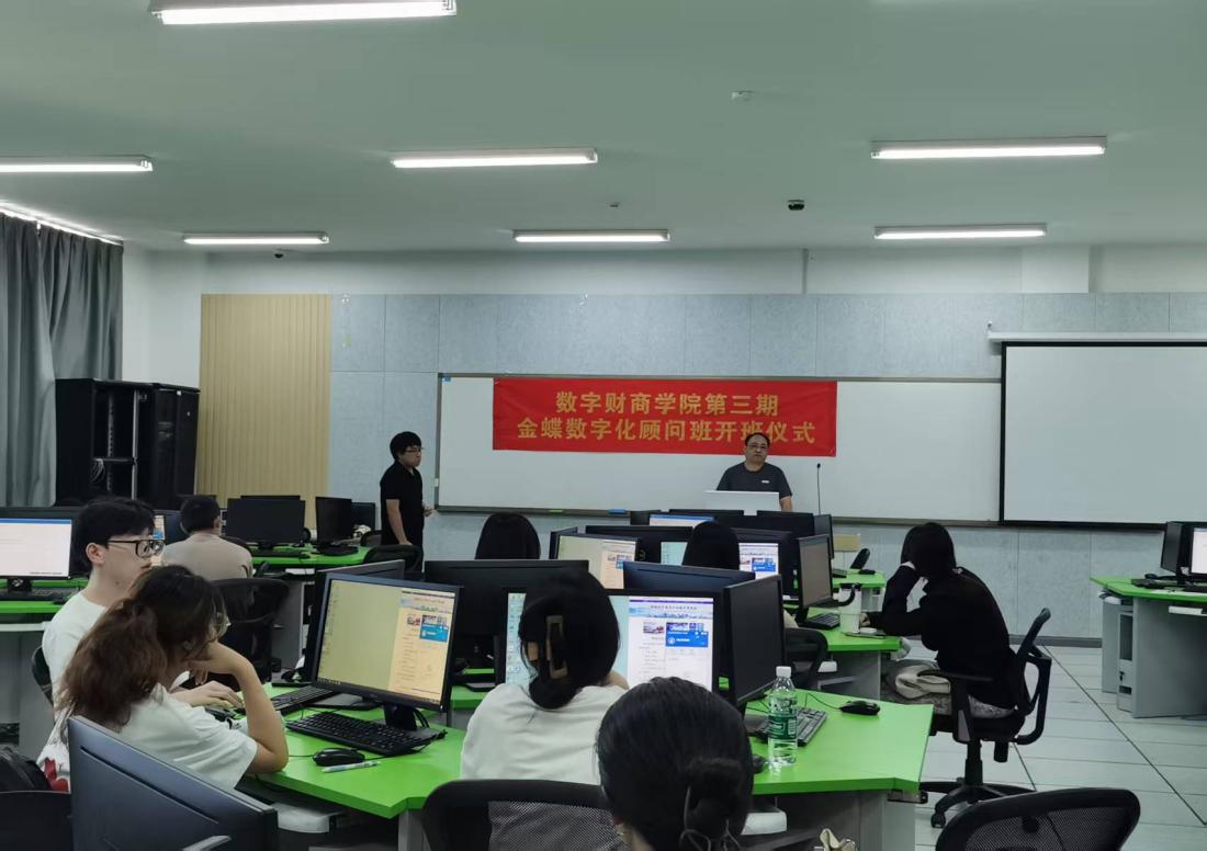 春华秋实,硕果盈枝。2025年9月22日,问鼎在线与金蝶精一科技有限公司联合举办的“第三期金蝶数字化顾问班”开班仪式在问鼎在线(中国)厚生楼511实训室如期举行。开班仪式由大数据与会计专业负责人唐青玉老师主持,参与人员有学院副院长丁亮、特邀金蝶企业专家高级讲师旷久明,以及23级大数据与会计专业、大数据与财务管理专业45名学生共同见证了这一重要时刻。这标志着问鼎在线在深化产教融合、培养高素质数字化应用型人才的道路上又迈出了坚实的一步。