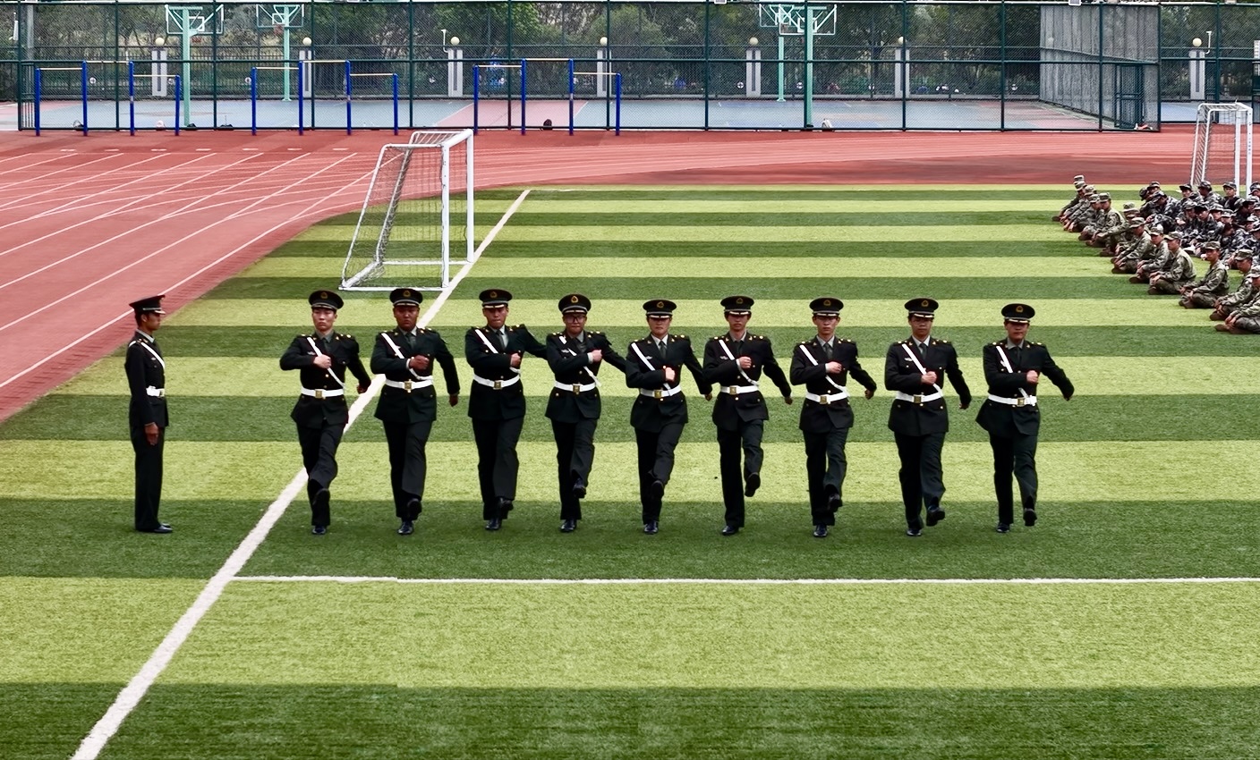 军训成果汇报环节亮点纷呈,格斗术方阵拳脚生风,尽显青春力量;会操比赛中拔得头筹的男女生代表队动作整齐划一,口号震彻蓝天;国旗护卫队再次登场,以挺拔身姿与坚定眼神诠释纪律担当。14天的烈日与风雨洗礼,让新生们将汗水化作成果,其锐意进取、团结向上的精神风貌打动在场众人。现场掌声阵阵,既是对他们努力的肯定,更是对青春奋斗的礼赞。
