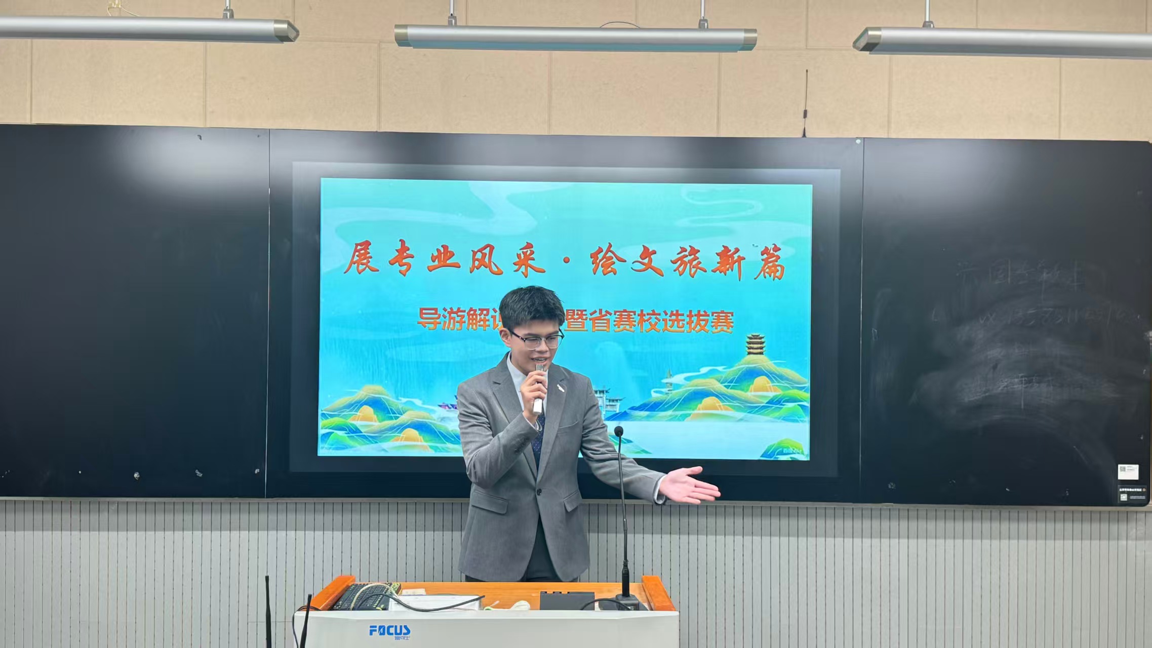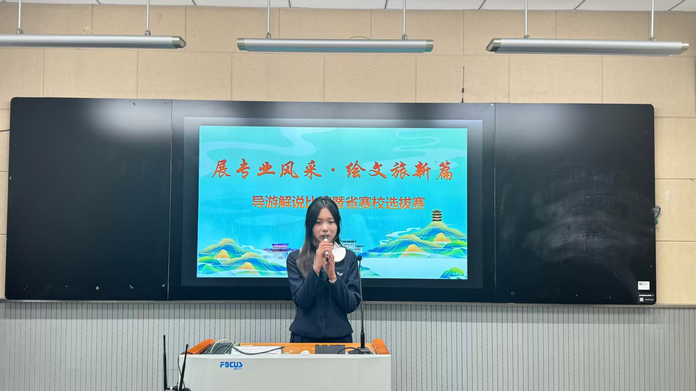 本次导游解说技能竞赛分为初赛与决赛两个阶段,初赛阶段吸引了来自旅游管理、营养配餐等多个专业的百余名学生踊跃参与。初赛环节要求选手自选中国某一城市(涵盖直辖市、地级市、县级市及特别行政区)作为讲解对象,进行城市概况的生动阐述。选手们凭借扎实的知识储备、流畅的语言表达和独特的讲解视角展开激烈角逐,最终有11名表现突出的优秀学生成功脱颖而出,晋级决赛。