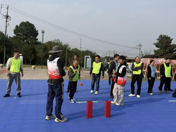 活动前两天,师生团队与社区工作人员深入对接,充分了解需求与场地条件,为35名社区员工量身定制了包含“默契托球接力”“三人四足”等4个团体项目及“精准投壶”“沙包掷准”等3个个人项目的活动方案。活动当天,朱杰老师将学生分为7个小组,每个小组独立负责一个项目的规则讲解、赛事组织与裁判工作。同学们准备充分,认真研读规则,有条不紊地引导比赛进程,确保活动顺利进行。学生们专业组织能力和认真的服务态度,赢得了社区工作人员的高度赞许。