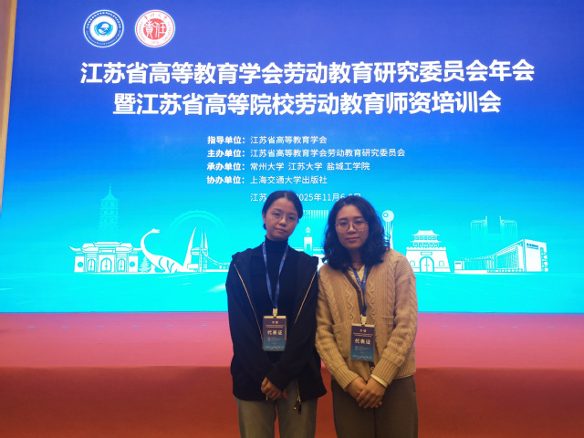 为了深入贯彻国家关于加强劳动教育的方针政策,推动高校劳动教育高质量发展,11月7日,数字文创学院教师李碧天、周鑫杰参加了由江苏省高等教育学会劳动教育研究委员会主办的2025年江苏省高等教育学会劳动教育研究委员会年会暨江苏省高等院校劳动教育师资培训会。此次年会汇聚了众多高校领导、专家学者以及行业精英,共同探讨劳动教育的新路径、新方法。