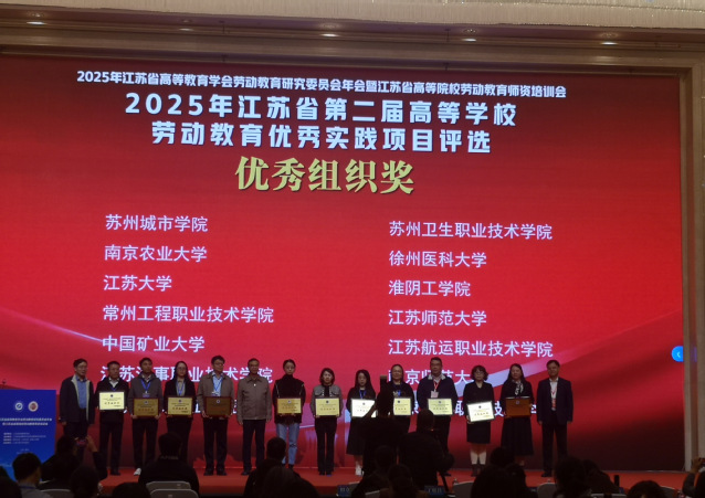 随后,我院李碧天老师代表学校上台,领取了主办方颁发的江苏省第二届高等学校劳动教育优秀实践项目优秀组织奖。这一荣誉是对学校在劳动教育领域长期努力和突出成果的高度认可,也激励着全体师生在劳动教育的道路上继续砥砺前行。