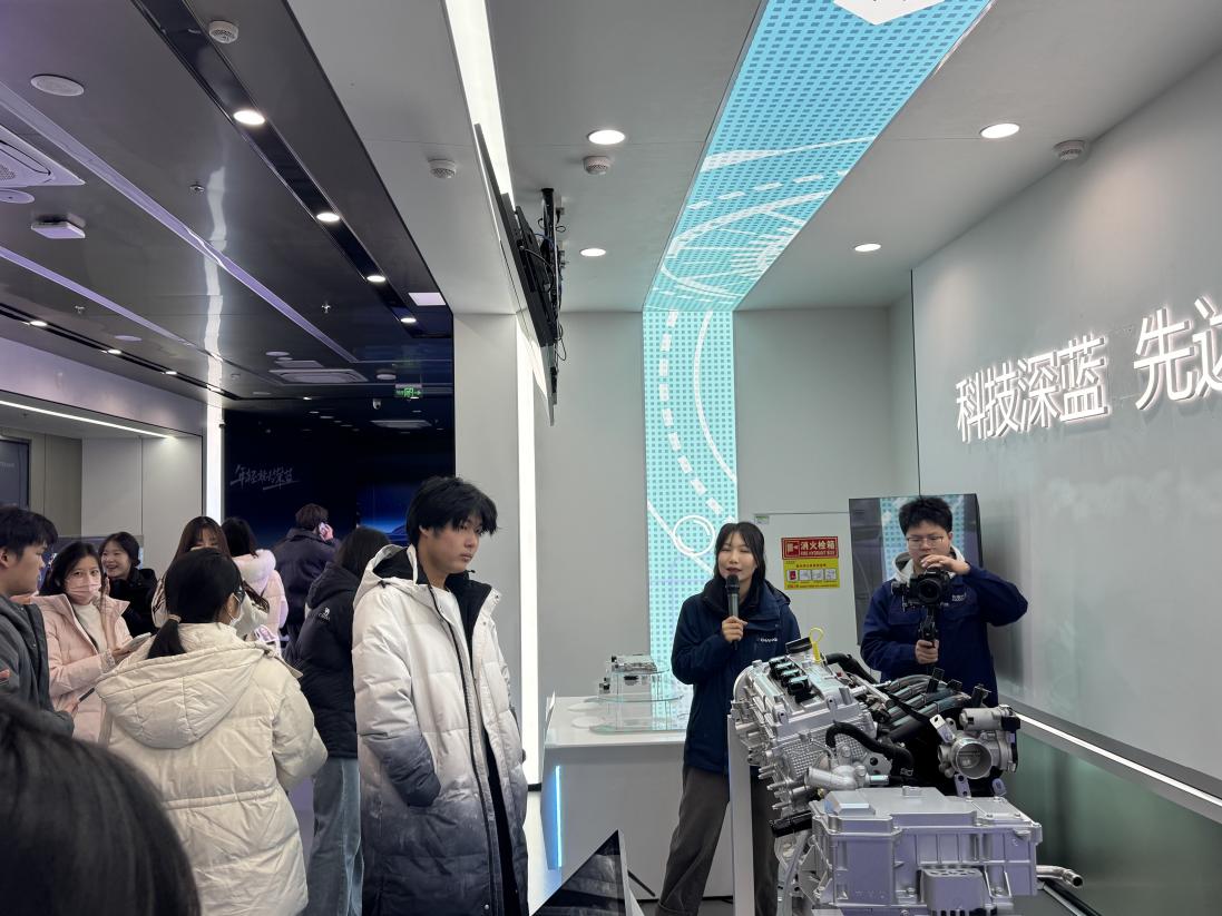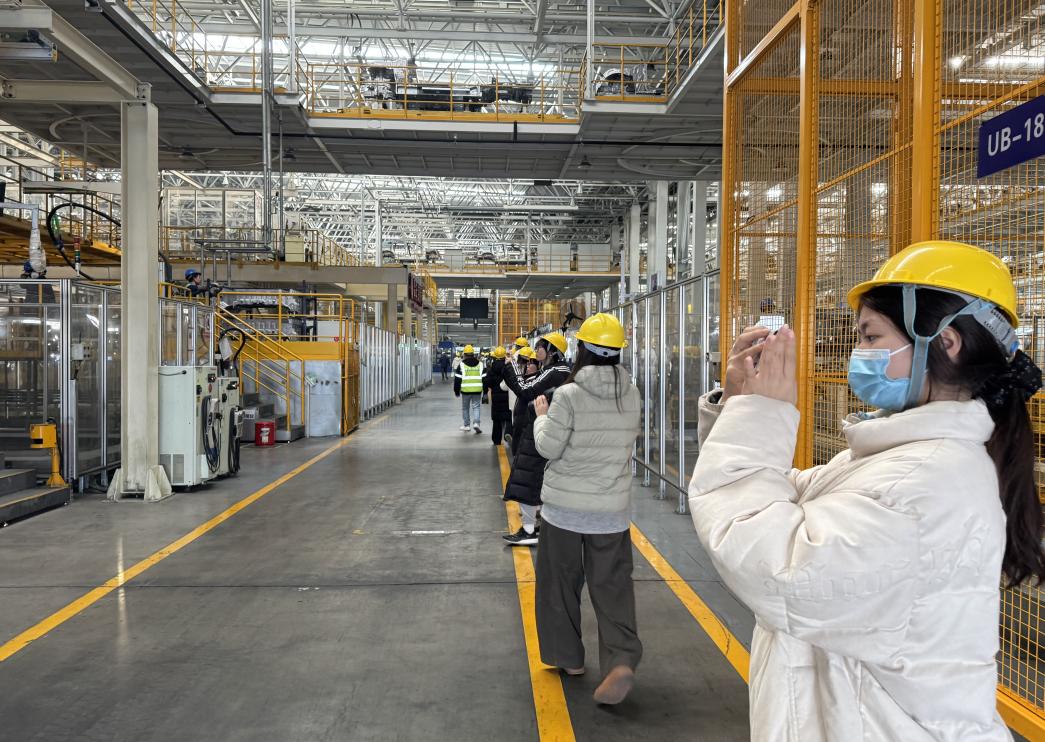 为促进理论认知向实践感知转化,12月5日,大赛组委会组织学生代表前往长安汽车智能化生产基地开展实地研学与素材采集。在高度自动化、数字化的生产现场,学生们近距离观察智能机器人的精准协作、数字化管控系统的实时调度,亲身感受“智能制造”的运作逻辑与产业实态。在车型展厅,学生与深蓝S07等最新产品互动体验,从用户视角理解产品设计与科技内涵。这次沉浸式参访不仅丰富了学生的视觉与素材库,更在真实场景中深化了他们对“智造”内涵的理解,为后续创作注入了真实的产业洞察与情感共鸣。