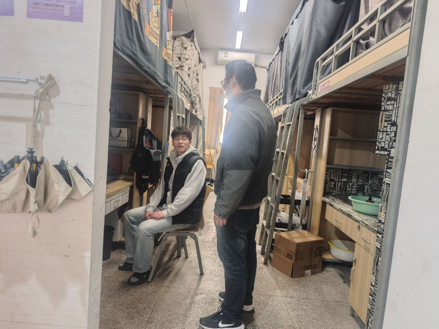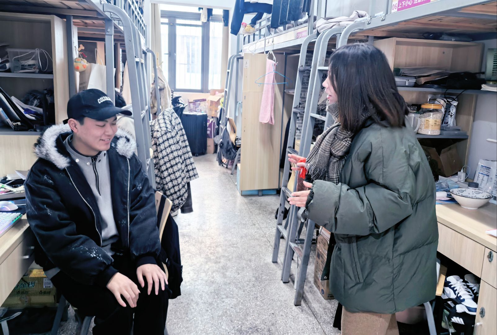 为确保学生离校前宿舍安全无隐患,辅导员深入学生公寓,逐间走访学生宿舍,实地查看用电安全、物品存放及卫生状况,叮嘱同学们离校前务必关闭电源、锁好门窗、妥善保管贵重物品,并及时清理易腐垃圾,防止安全隐患发生。在走访过程中,辅导员还与学生亲切交流,了解其返乡安排和实际困难,对家庭经济困难或存在心理困扰的学生给予重点关注和帮扶,传递学院温暖关怀。
