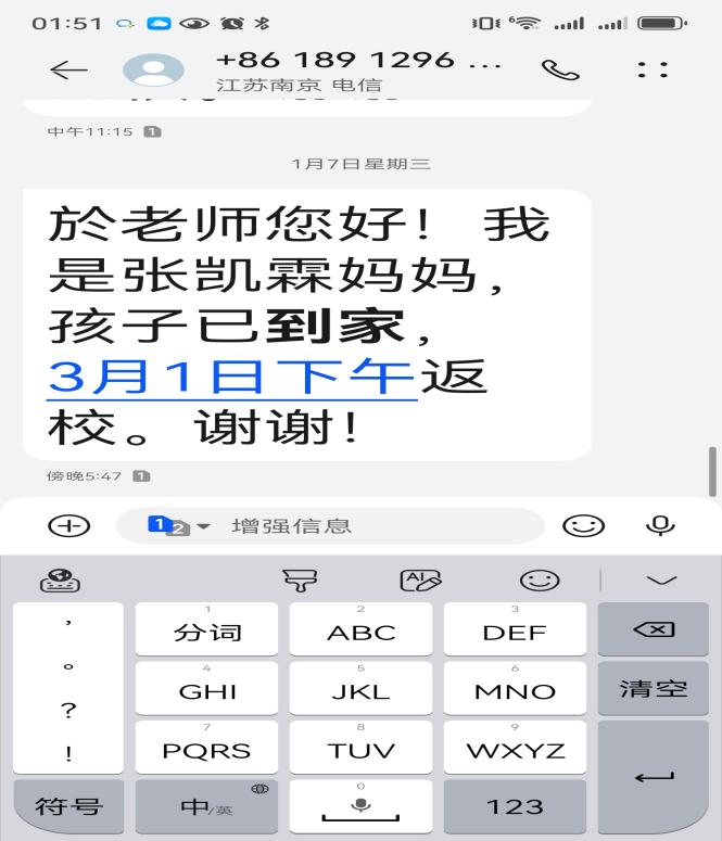 此次安全教育注重家校协同,通过强化信息沟通渠道,努力构建家校共管的安全防护网。辅导员们亦积极引导学生合理安排假期作息,积极参与家庭劳动与社会实践,保持健康生活方式与积极乐观心态,并做好冬季常见传染病的个人防护。