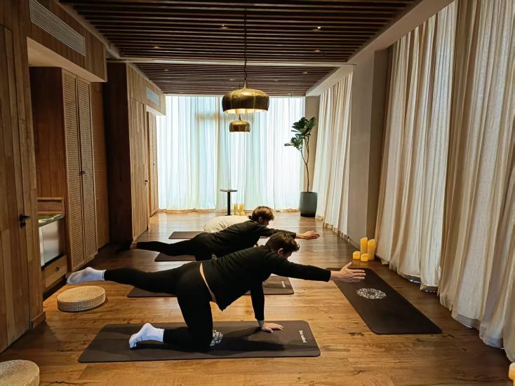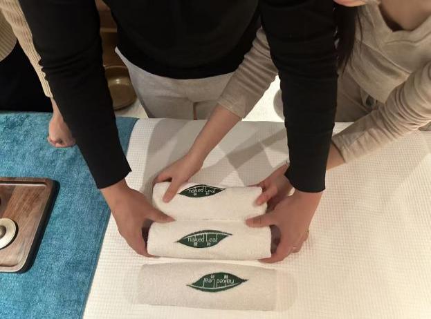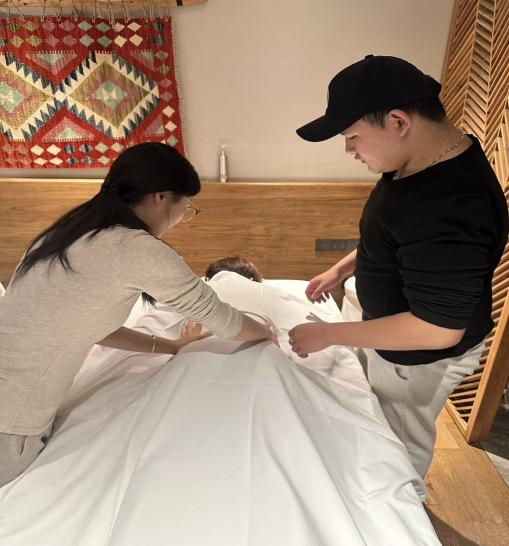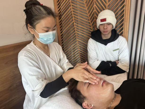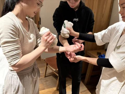 本次实践学习聚焦康养服务核心技能,设置裸叶水疗SPA、古法草药球制作及按摩、接待服务礼仪标准、瑜伽练习等核心模块。其中,裸叶水疗SPA学习中,学生们系统掌握融合洋甘菊、佛手柑与薰衣草香气的舒缓按摩技法,校外导师从精油调配、力度把控等维度教学,这与校内康养按摩技法课程的理论知识形成呼应;古法草药球按摩学习中,学生研习草药球选材配比、手工缝制及祛湿驱寒按摩手法,更是对中医养生课程内容的实操深化;接待服务礼仪实训则衔接了校内健康服务礼仪课程的规范要求;瑜伽练习模块也与专业中的运动健康管理课程知识点紧密结合,学生们在导师指导下,将所学的体式原理、呼吸调节等知识转化为实操能力。